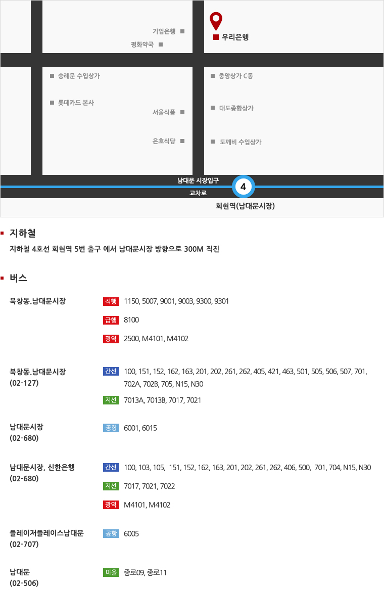 : 서울특별시 중구 남대문시장길 25-8 우리은행 3층